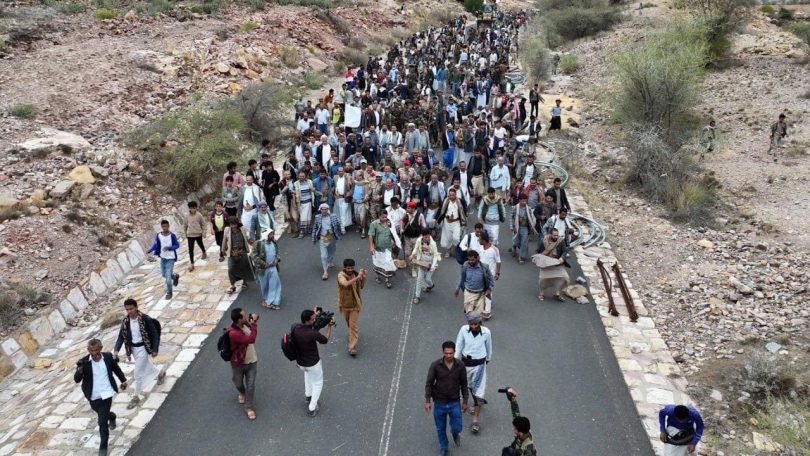 وأظهر مقطع فيديو نشرته وسائل إعلام تابعة لحكومة صنعاء، قيام اللجنة الرئاسية واللجنة العسكرية المعنية بفتح الطرقات، مع حشد جماهيري كبير، بإزالة الحواجز الترابية والأحجار المنتشرة في الطريق، كما أظهر الفيديو أصوات إطلاق نار على اللجان والجموع الغفيرة من المواطنين، ما أدى إلى إصابة اثنين، وفق ما أكده التسجيل المرئي.