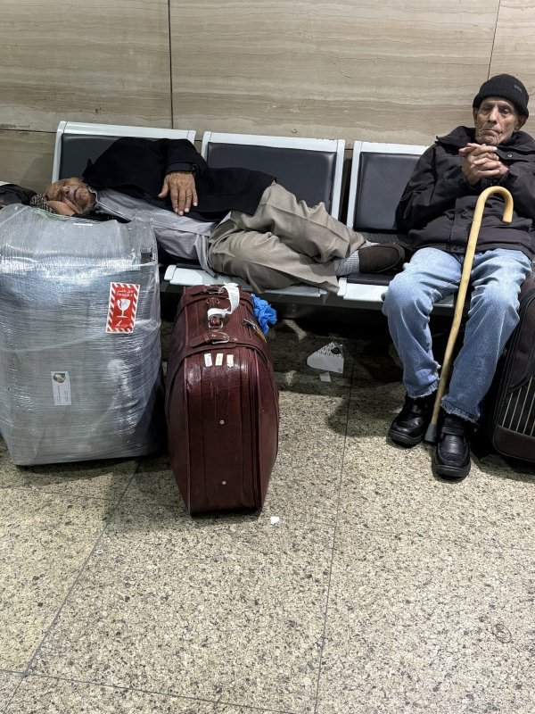 ونشرت الفنانة اليمنية ماريا قحطان عدة صور أظهرت مسافرين خلال الانتظار، وقالت إن من بين المسافرين نساء وأطفال ومرضى.