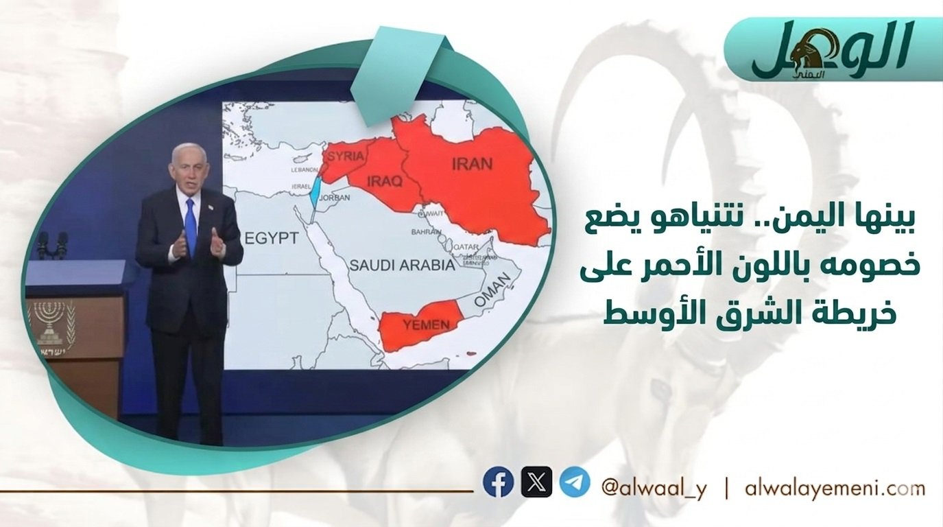 أثار رئيس الوزراء الإسرائيلي بنيامين نتنياهو موجة واسعة من الجدل، عقب عرض خريطة للشرق الأوسط خلال كلمة مصورة، صنّف فيها عدداً من الدول باللون الأحمر، في إشارة إلى ما وصفه بـ“التهديدات الأمنية” المحيطة بإسرائيل.