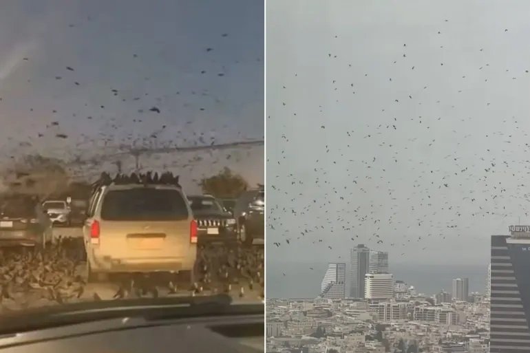 شهدت سماء مدينة تل أبيب في الأيام القليلة الماضية ظاهرة طبيعية وصفت بـ “المرعبة” و”الدرامية”، حيث غطت أسراب ضخمة من آلاف الغربان السوداء الأفق، وحلقت بكثافة فوق المباني الشاهقة وناطحات السحاب، بما في ذلك “أبراج عزرائيلي” الشهيرة.