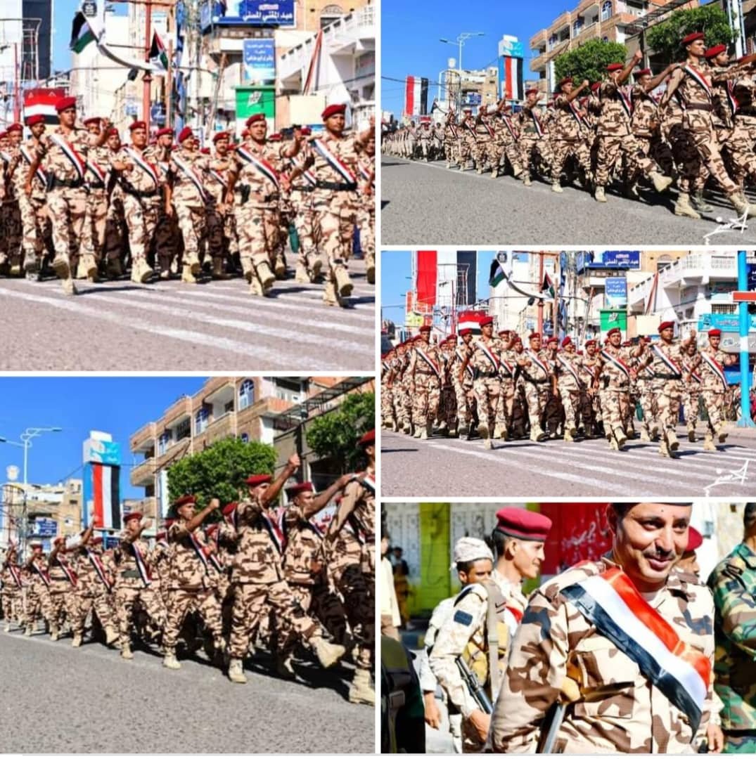 وفي الحفل الذي أقيم في شارع جمال وسط مدينة تعز، ونظمته قيادة محور تعز العسكري، شاركت فيه وحدات رمزية عسكرية وأمنية في العرض، بحضور القيادات العسكرية والأمنية وقيادات السلطة المحلية والأحزاب السياسية، وسط احتفاء شعبي كبير بالمناسبة.
