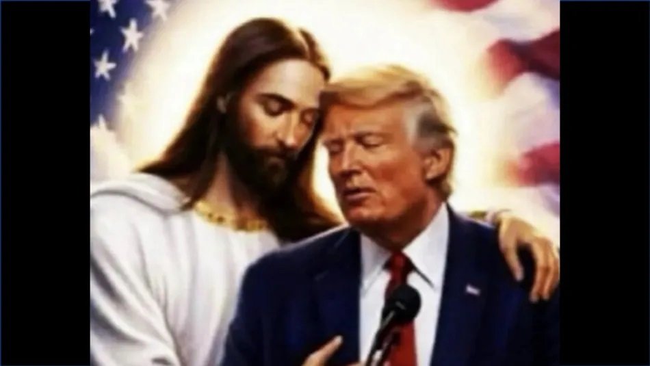 بدأت القصة حينما شارك ترامب صورة تم إنشاؤها بواسطة الذكاء الاصطناعي يظهر فيها وهو مغمض العينين، بينما يضع السيد المسيح يده على كتفه ويلامسه “من الجبهة إلى الجبهة” في وضعية توحي بالدعم الروحي المطلق، وقد أرفق ترامب مع الصورة تعليقاً قال فيه إن “المجانين من اليسار الراديكالي قد لا يعجبهم هذا، لكنني أعتقد أنه لطيف جداً”، مما اعتبره خصومه محاولة لتعزيز صورته كشخصية “مختارة” أو “مقدسة” أمام قاعدته الانتخابية من المسيحيين المحافظين.