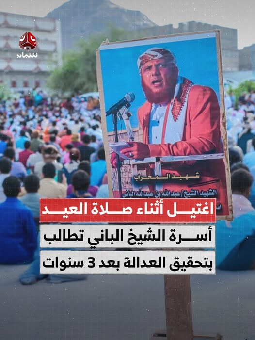جددت أسرة الشيخ عبدالله بن عبدالله الباني، إمام وخطيب مصلى العيد في مديرية بيحان بمحافظة شبوة، مطالبها بسرعة استكمال إجراءات العدالة بحق جميع المتورطين في جريمة اغتياله، وذلك بالتزامن مع الذكرى الثالثة لاغتياله.
