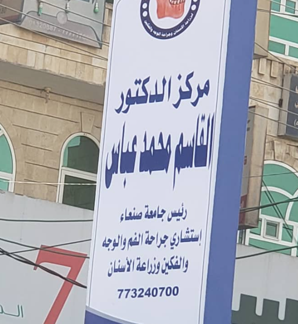 تناقلت وسائل التواصل الاجتماعي صورة اللوحة الإعلانية لعيادة رئيس جامعة صنعاء.