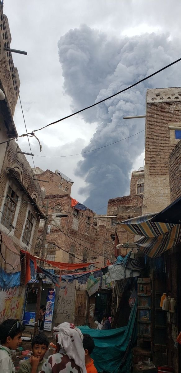 وقد أكد شهود عيان سماع دوي انفجارات ضخمة هزّت الأحياء السكنية، فيما أفادت وسائل إعلام تابعة للحوثيين بأن الهجوم استهدف مواقع عسكرية دون أن تقدم تفاصيل دقيقة حول حجم الأضرار أو الخسائر، وذكرت كذلك استهداف إحدى الغارات شركة الغاز في شارع الجزائر.
