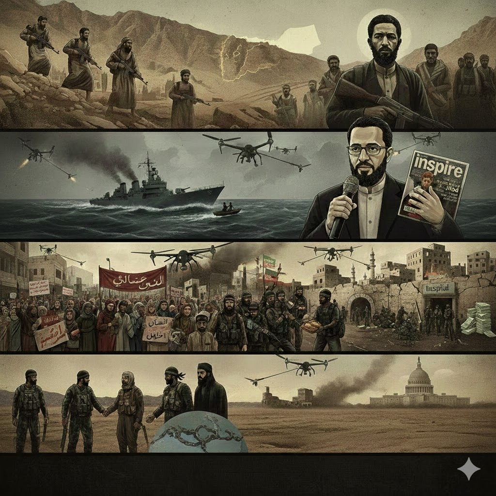 | 2009 – 2011 | ذروة التنظيم العالمي: انضم أنور العولقي (الداعية الشهير) إلى التنظيم، وأسس مجلة Inspire باللغة الإنجليزية، ليحدث طفرة في الدعاية والإعلام الجهادي. أصبح التنظيم اليمني هو “الأكثر خطورة” على العالم في نظر التقارير الأمريكية حينها [01:24:34]. |