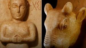 وقال “محسن” أن القطعة الأولى عبارة عن شاهد قبر من مملكة قتبان يعود تاريخه إلى الفترة بين القرن الأول قبل الميلاد والقرن الأول الميلادي، ويُظهر رأس ثور منحوتًا بدقة عالية، تعلوه كتابة بخط المسند القديم.