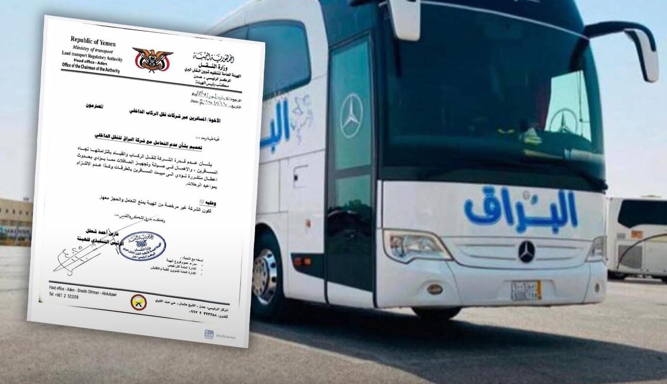 وأوضحت الهيئة في تعميم رسمي أن “شركة البراق” خالفت لوائح التشغيل ولم تلتزم بمواعيد الرحلات المقررة، كما أهملت صيانة وتجهيز حافلاتها، ما تسبب في تعرض المسافرين لأعطال متكررة واضطرارهم للمبيت في الطرقات خلال رحلاتهم.